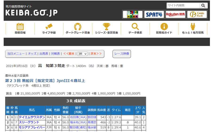 トップページ〈レース情報〉より(結果)ボタンをクリックしてください。