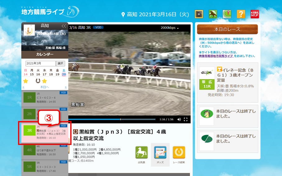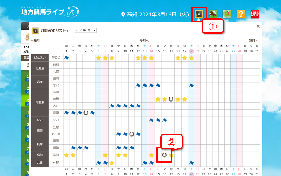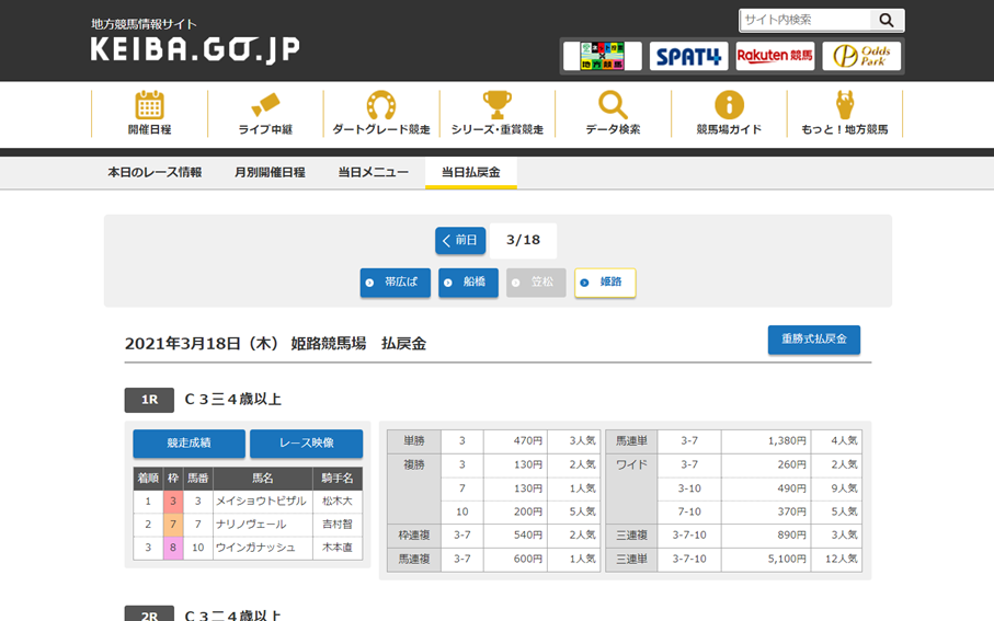 また、当該場における1日の払戻金一覧は「当日払戻金」よりご確認いただけます。