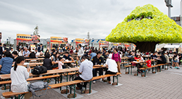 広大なイベントスペースとして、夏休みや年末開催の時期には、大規模グルメフェスなどが開催され、多くのお客様が来場し盛大な賑わいをみせます。