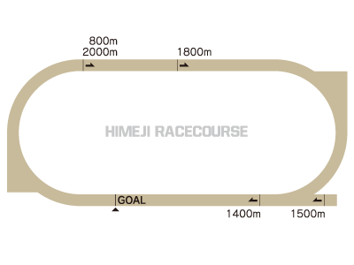 1周1200m右回りで、直線230mで高低差0mのコースになっております。園田とは違った展開をお楽しみいただけます。