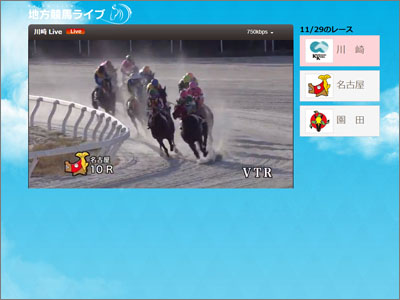 | YouTube Live | 帯広・ 門別・ 船橋・ 大井・ 川崎・ 金沢・ 笠松・ 名古屋・ 園田・ 姫路・ 高知・ 佐賀 |