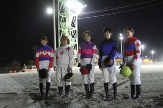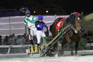「LVRレディスヴィクトリーラウンド」第1ラウンドに先がけ、帯広競馬場にてばんえいエキシビションレースが行われました。レースには、宮下瞳騎手(愛知)、木之前葵騎手(愛知)、 別府真衣騎手(高知)、下村瑠衣騎手(高知)らLVR出場騎手が参加したほか、ばんえい競馬の女性騎手、竹ケ原茉耶騎手(ばんえい)も特別に出場しました。LVR出場騎手4名はばんえいの騎手とコンビを組み、竹ケ原茉耶騎手は単独でレースを行いました。レース結果は以下の通りです。