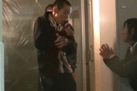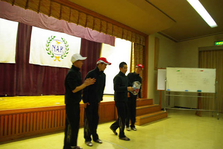 お腹が一杯になったら、“ビビり-1グランプリ”を上映しました!予め寄宿舎や体育館など、候補生同士で驚かせ合った映像を撮っていたものです。