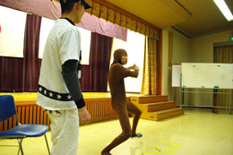 ラスト大トリは、東川くんと大木くんのペアです!今流行りの、リズム縄跳びのコントを披露してくれました!東川くんはさすがの縄跳び捌きです。