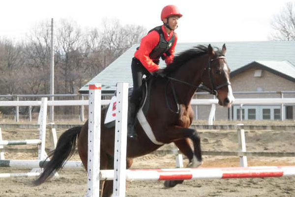 今回の技能審査では、普段から気を付けている注意点を上手くこなして騎乗することができませんでした。特に、次の障害に向かうときに手綱に頼った誘導をしてしまいました。脚の扶助を意識して使い、正確な誘導ができるようになりたいと思います。馬のペースは、経路走行の後半から良いペースになっていたので、スピードの感覚を磨いていきたいと思います。