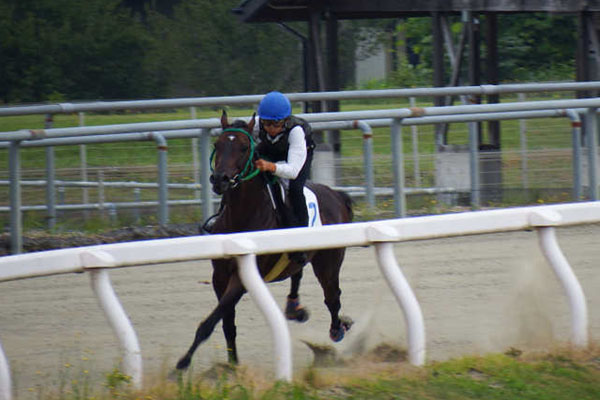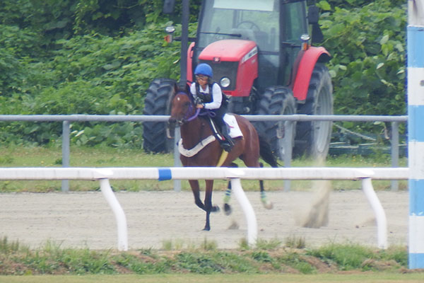 今回初めての発走から追い込みでしたが、ペース配分が悪く、最後の直線で馬をバテさせてしまいました。人の姿勢では、下半身が不安定で腰の構えが安定せず、まだまだ満足できない内容でした。しっかり克服していきたいです。