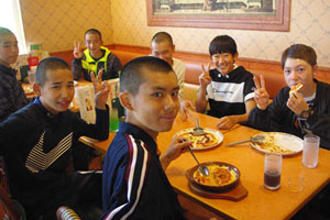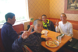 朝の騎乗と作業を終えて、まずはみんなでサイゼリヤへお昼ご飯を食べに行きました。