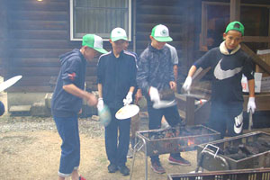 | みんなで一生懸命火を起こしました。 飛田君、何だか風格が出てますね。(笑) |
