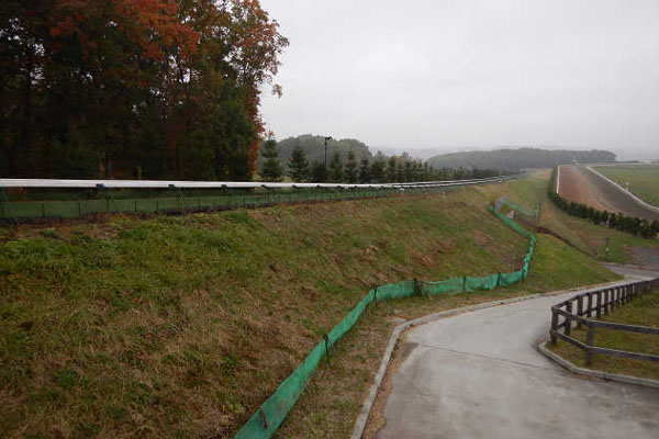 次に坂路へ行きました。全長950m、高低差36mという大きさでした。なんと!美浦トレセンよりも大きいそうです。