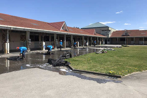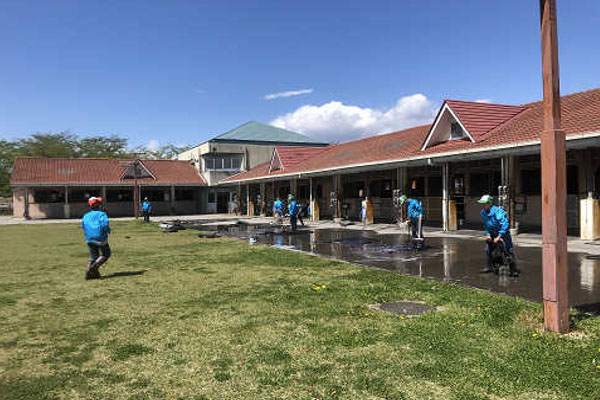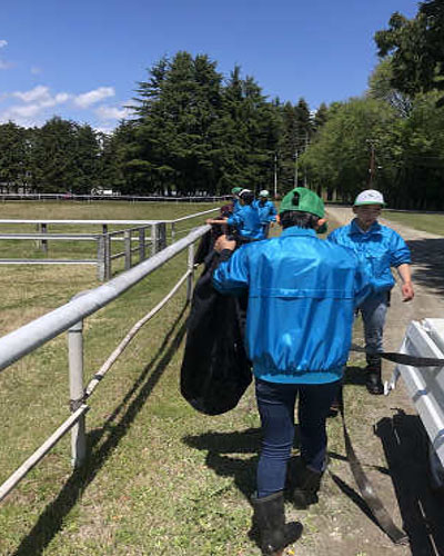 5月になり、気温も上がってこれから暑くなる季節を迎えるということで、冬の間、防寒対策で馬に着せていた馬着を99、100、101期全員で洗います!!!