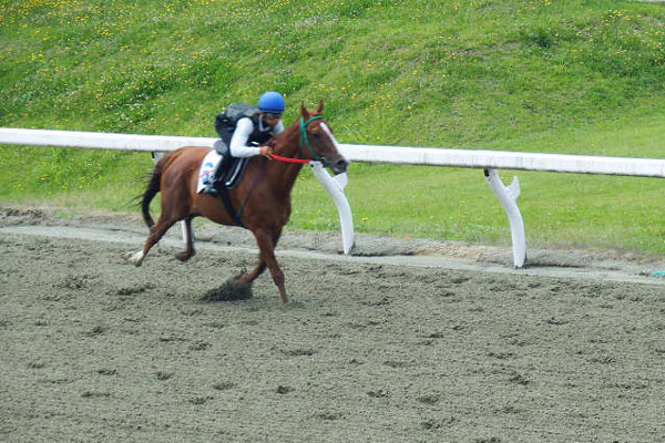 内ラチで走る事やコーナーをきれいに回る事は出来ましたが、間歩(かんぽ)を途中で数えられなくなり速度が分からなくなったり、騎乗姿勢の維持が出来ず前傾姿勢になってしまいました。今回の馬なりで、課題が沢山見つかったのでしっかり頑張っていきたいです。