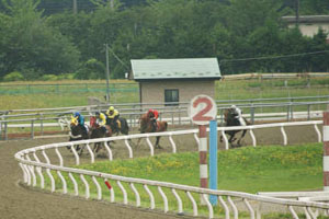 3コーナー、4コーナーを周って、最後の直線に入ります。
