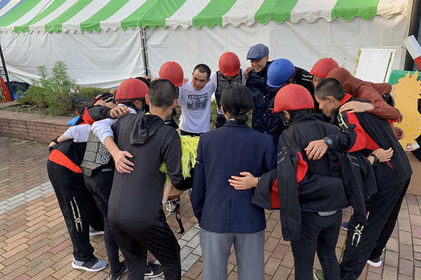 ↓出番前の円陣!
