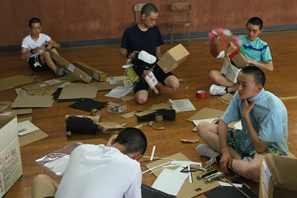 自由時間をうまく使い、ふれあいまつりに参加するために道具や衣装作りをして、暑さにも負けず体育館で仮装大会に向けた練習を沢山しました。