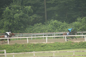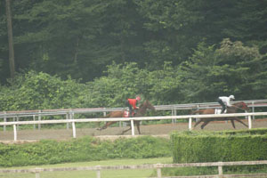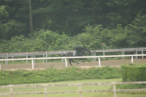 まずは返し馬から紹介します。一人ひとり、馬の状態に合わせて、準備運動をしています。