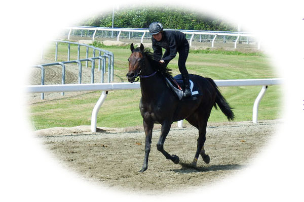 今回の実技試験では、状況判断し上手くコース取りができました。追い込みもリズム良く低い姿勢で追えたと思います。課題は元々ゲートの出がよくない馬でしたが、今回もジャンプ発走(ゲート内の駐立状態に難がある馬で、後肢でジャンプするように発進してしまうこと。写真参考)してしまったので、上手く出せるようにしていきたいです。
