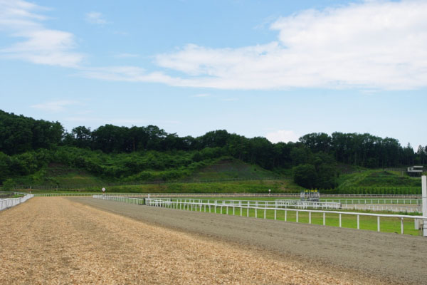 坂路は特殊な馬場になっていて、ポリトラックという粘土みたいな素材になっていて中に電線被服材(海底ケーブルの銅線を抜いたもの)が混ざっていたりしていました。ポリトラックの特徴として中にオイル(油)が入っていて水をはじくということがあり、天候が悪くてもほとんど馬場状態が変わらず使えるようになっています。