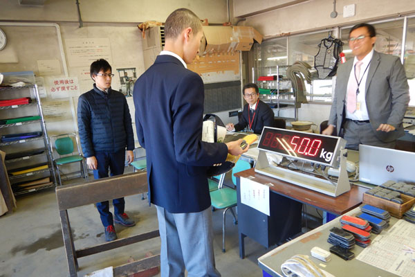ここでは実際に鷹見(たかみ)君が検量を体験していました!