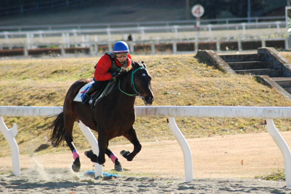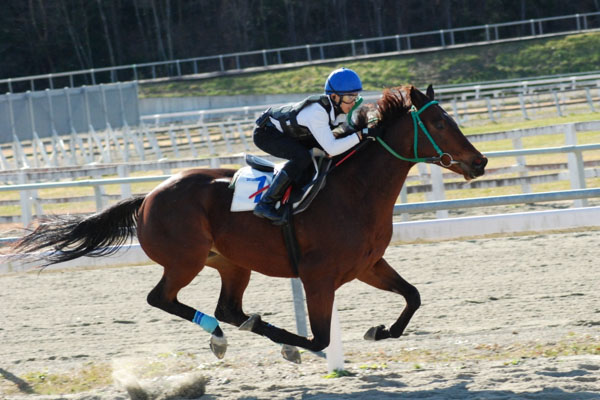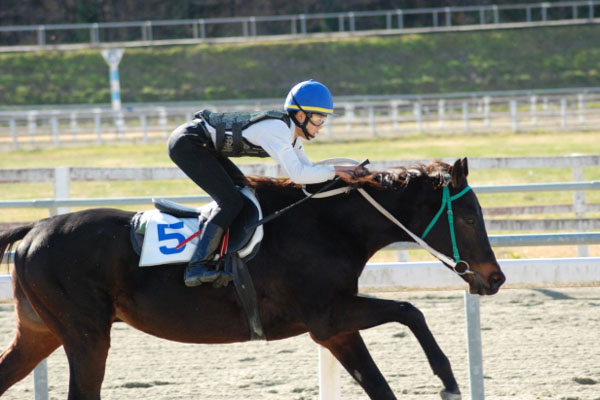 今回の追い込み操作では、低い姿勢の中での手綱の詰め替え、見せ鞭などが思った以上に難しく、鞭を打つのに体を大きく使ってしまいバランスを崩していました。今まで以上にイメージトレーニングを木馬に乗りながらしていき、馬上で冷静に乗れるようになりたいです。これからも日々の訓練を大切に乗っていきたいです。