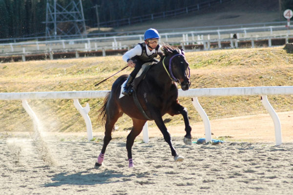 前回の馬なり操作は怪我で出来なかったので、今回初めて馬のトップスピードを体験しました。馬が走るにつれて意外と安定してとても楽しかったです。映像を見ると自分が思っている以上に出来ておらず、もっともっと脚、姿勢、手の動きともに練習が足りていないと実感しました。これからも訓練、トレーニングに励みたいと思います。