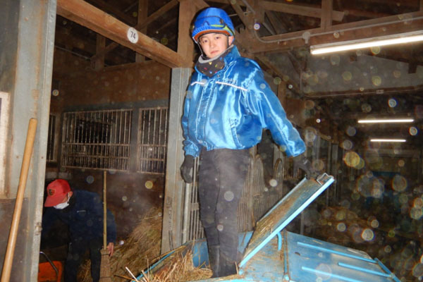 翌朝は5:20に起床、検量し、5:30から厩舎作業をお手伝いしました。