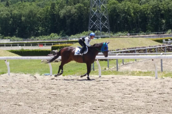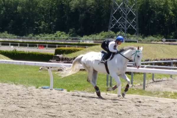 今回の馬なりで意識した事は、スピードに慣れることと馬の動きについて行くことです。良かった事は、内ラチ沿いをロスなく走行することが出来た事です。悪かった事は、手綱の詰め替えが出来ず、手綱がゆるくなってしまって馬とのコンタクトがとれていなかった事です。今後の訓練では、常に一定のコンタクトを保って乗れるようにしたいです。