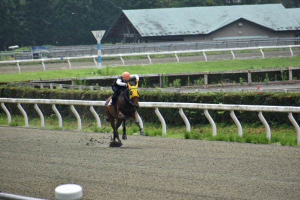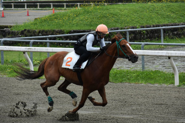 今回はゲート裏から元気に歩かすことができず、道中も真っ直ぐ走れなくて直線で外に膨れて、内埒から3馬幅の位置を走行するという指示でしたが中央走行になってしまいました。次はしっかりと決められた場所を走れるようにしたいです。