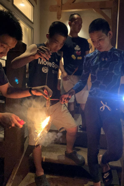楽しい時間を過ごしていると、あっという間に外が暗くなり、花火の時間になりました。
