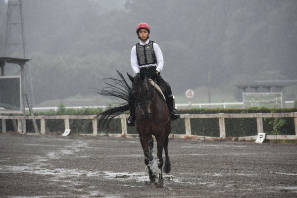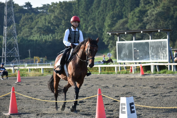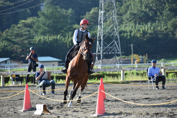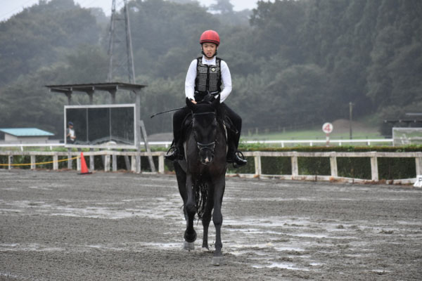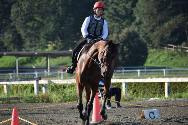 技能審査の訓練を始めたときは、上手に騎乗できず、少し不安でしたが、訓練を重ねていくうちに、少しずつ馬との信頼関係が芽生え、良い運動ができるようになり、技能審査当日では、馬のやる気はこれまでで一番あって、とても良い走行をすることができたのでとてもよかったです。