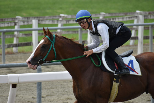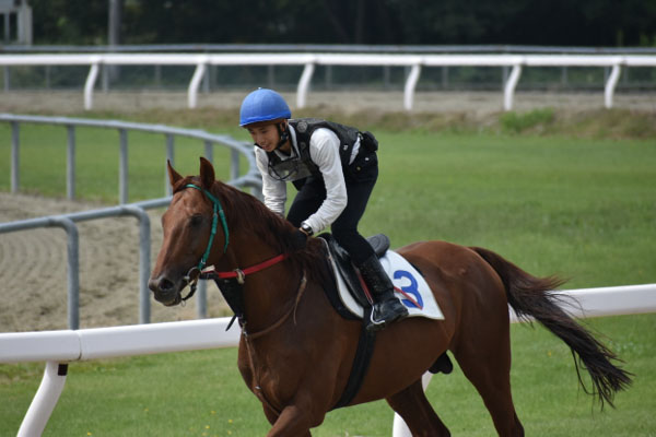 今回大切にしたことは、内ラチを走行していくこと、ゲートからの発進と最後の直線での追い込み操作の時に、お尻が落ちないように乗ることでした。上手くいったことは、コーナーの入りに肩に1発ステッキを使い、外に膨れないで走行出来たことと、最後の直線で姿勢を低くできたことでした。上手くいかなかったことは、思ったより踵が落ちてしまい、追い込むときに馬を引っ張ってしまったこと、ゲートからの発進でタイミングが合わず、バランスを崩してしまったこと、ステッキワークが上手くいかなかったことです。今後はこの課題を改善していき、視野を広げて上手に乗れるようにします。