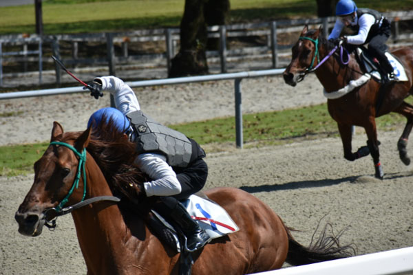 今回意識したことは、ゲート発進した後、踵がおちないようにすることと、出遅れた際には声をかけて追いつくようにすること、直線のステッキを落ち着いてから打つことでした。