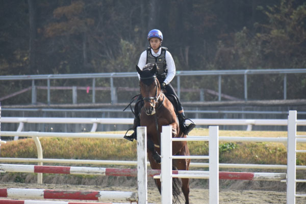 馬が元気よく障害に対しても飛ぶ意欲があったので、自信を持って走行できました。これからは動かすだけでなく、障害前で待つこともできるようになりたいです。