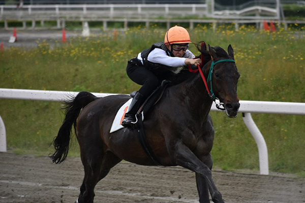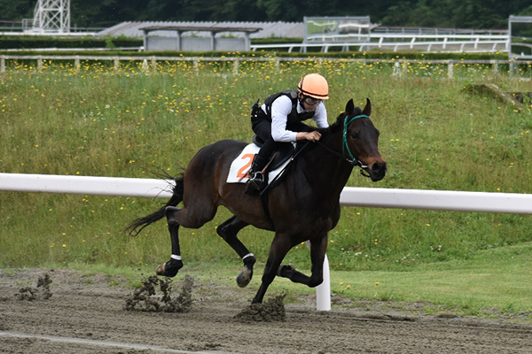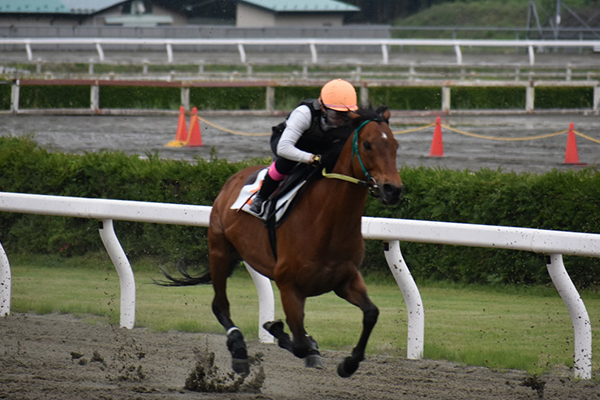 ゲートでやや後手を踏んでしまいましたが、その後はペースを作ることが出来ました。道中のコース取りも思っていた所を通れていたので良かったです。直線で鞭を打って内側にヨレてしまったので、もっと手綱の保持をしっかりとして真っすぐ走らせることを心がけていきたいです。