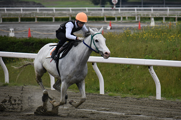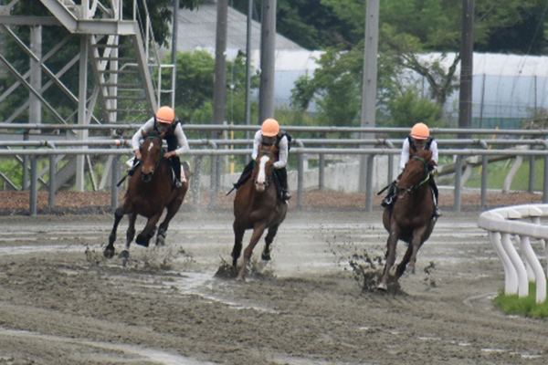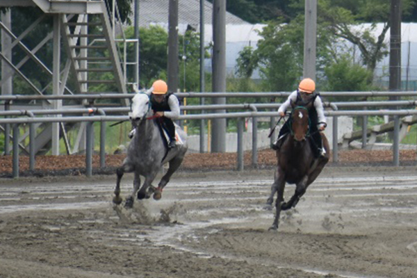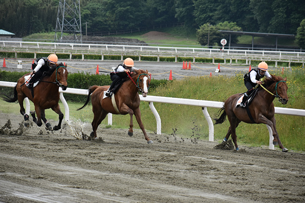 中間査閲当日は、直前まで雨が降っていて馬場状態が良くなかったものの、レースの時には雨が止み、見に来ていただいた方々に迫力のあるレースを近くで見てもらえることができて良かったです。