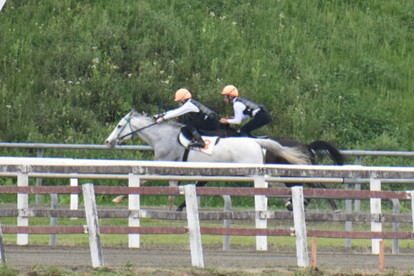 ゲートを出てからコーナーまで外を走ってしまい、距離ロスをしてしまいました。直線は内の馬に併せた中で追い込むことができました。もっと内の馬を気にしてゲートからしっかり併せられるように訓練で技術を上げていきます。