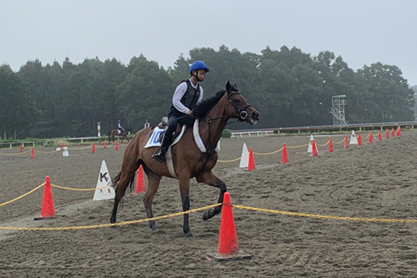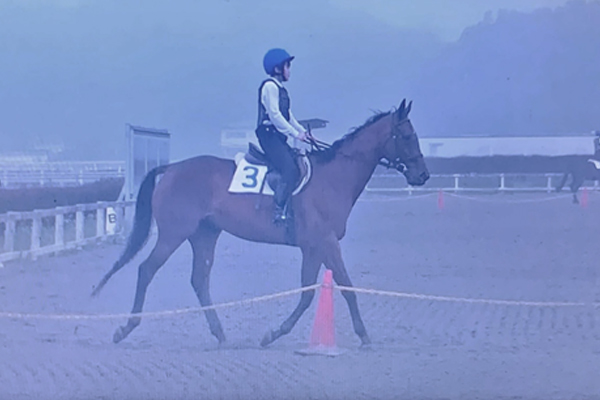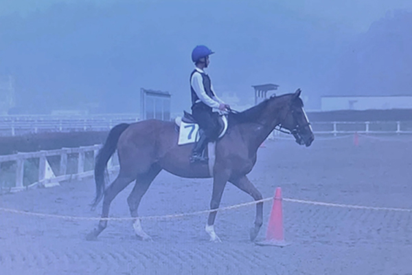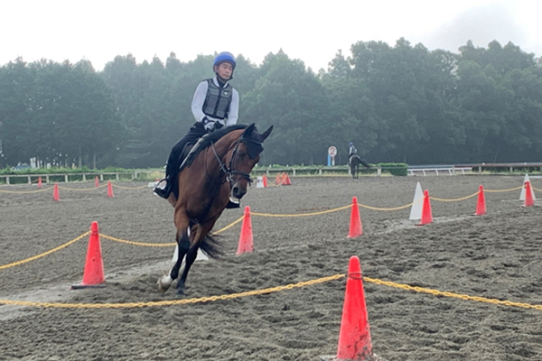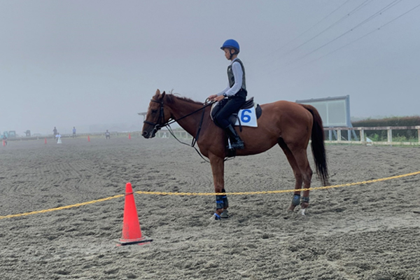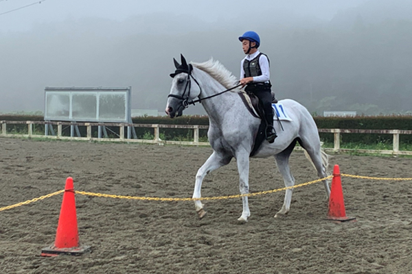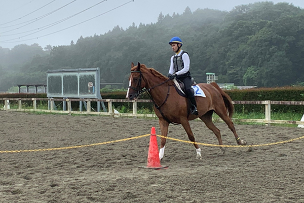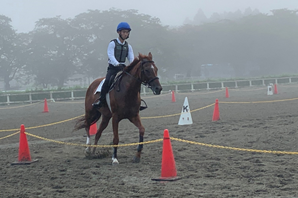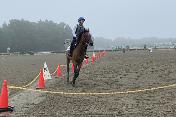 今回の技能審査は、速歩のペースは良かったのですが、駈歩に入ってから扶助が雑になってしまい、ミスが目立っていたので、もう少し丁寧にポイントを意識すれば良かったです。今後の訓練で改善していき、次回の技能審査に向けて頑張っていきます。