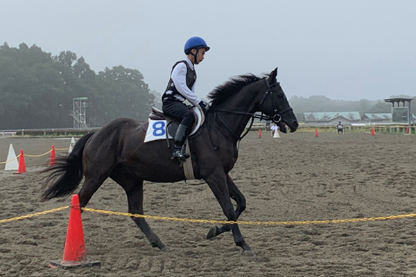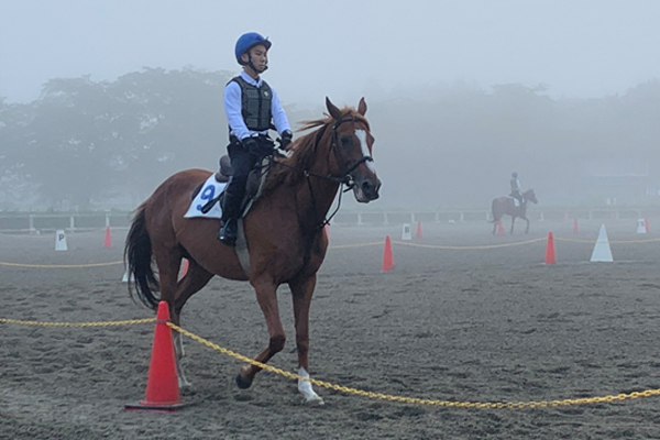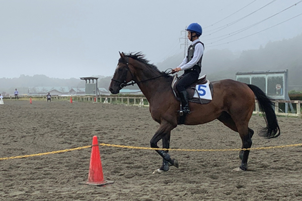 駈歩の発進で、いつもは普通に出来ていましたが、人の緊張が馬にも伝わってしまい、どちらも硬くなってしまい失敗してしまいました。これからは技術以外にも、本番に強い精神力を身に付けていきたいです。