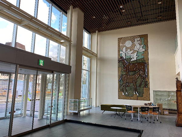 このエントランスには馬や競馬に関する展示品を展示しています!