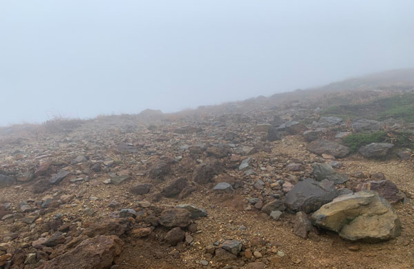 本来頂上までの予定でしたが、ガスがさらに濃くなってきたので急遽お昼を食べ終わったら下山することとなりました…