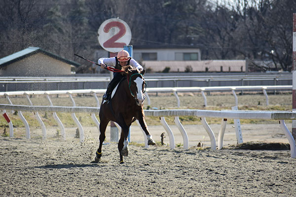 道中の騎乗姿勢や走行位置が良くなくて、今後の課題となりました。追い込みや鞭の使用はリズム良くできたので良かったです。