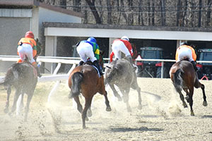 修了供覧の模擬レースでは、1名が怪我のためレースへの出走が叶いませんでしたが、4頭立てと5頭立ての2レースが行われました。