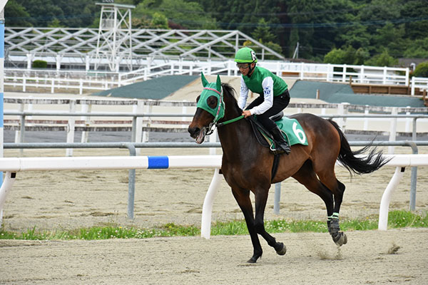 初めての右回りで慣れないところがありましたが、ゲートの発進や進路取りコーナーの周り方は大きなミスがなくできました。併走での馬幅間隔が開いていたにもかかわらず、寄せられず、距離をロスしてしまったので空けばすぐに寄せていくよう意識していきます。追い込みでは沈み込みが甘くなってしまったのでさらに下半身を強化していきたいです。