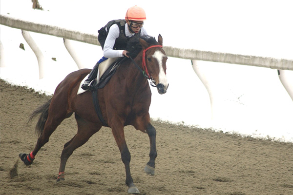 ゲートでは馬に付いて行くことができました。追い込み操作の時に上体が起きてしまったり、手綱の詰め替えをスムーズに行うことができなかったりしたので、木馬で練習するようにしたいです。